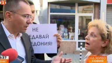 В 12 часа излязоха на протест и ВМРО. Надсловът на тяхната демонстрация е „Не предавай Македония.” Те протестират срещу „подмяната на българската позиция относно започването на преговорите на РСМ за членство в ЕС” – нещо, което нарекоха „национално предателство.”